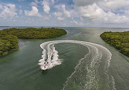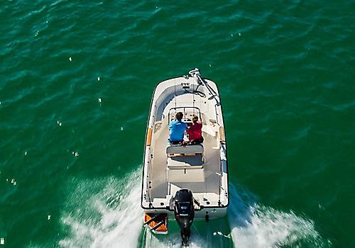 - Standard 90-hp Mercury® Command Thrust FourStroke engine.