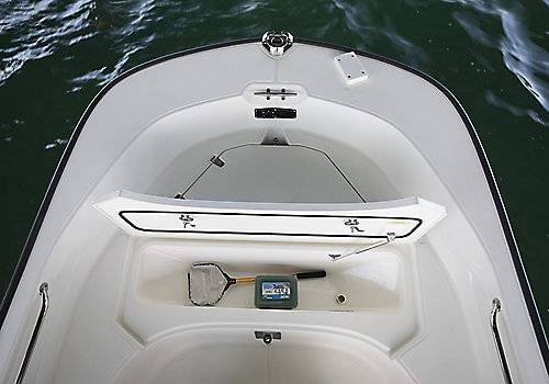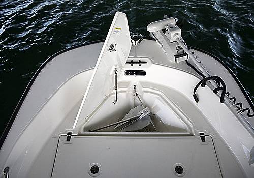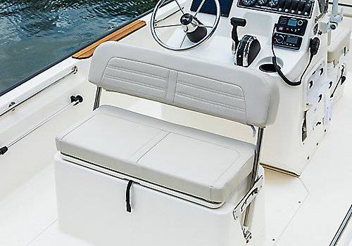- Optional Fishing Package includes tackle drawers, console-mounted rod holders, and 72-quart cooler seat with cushion and backrest.