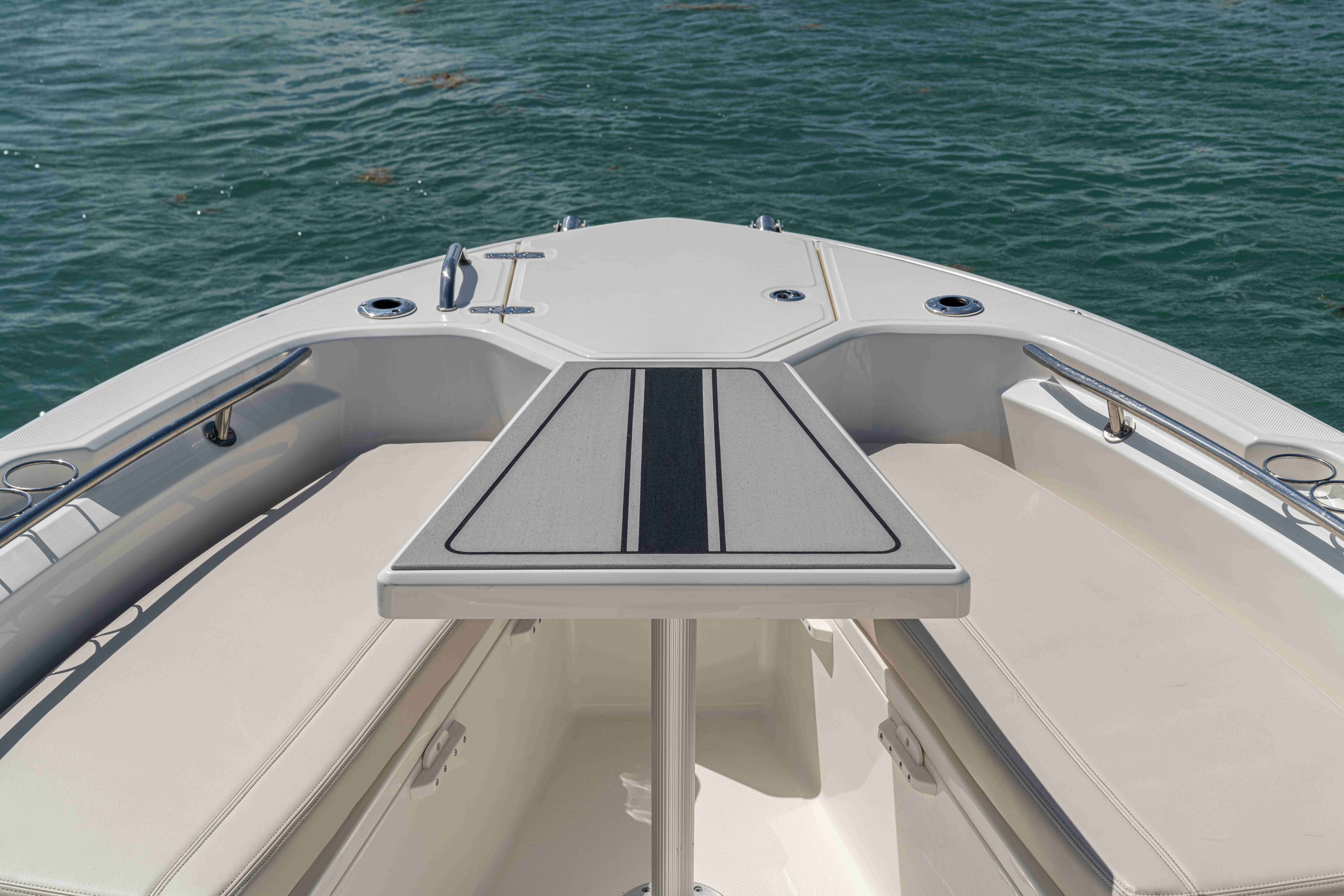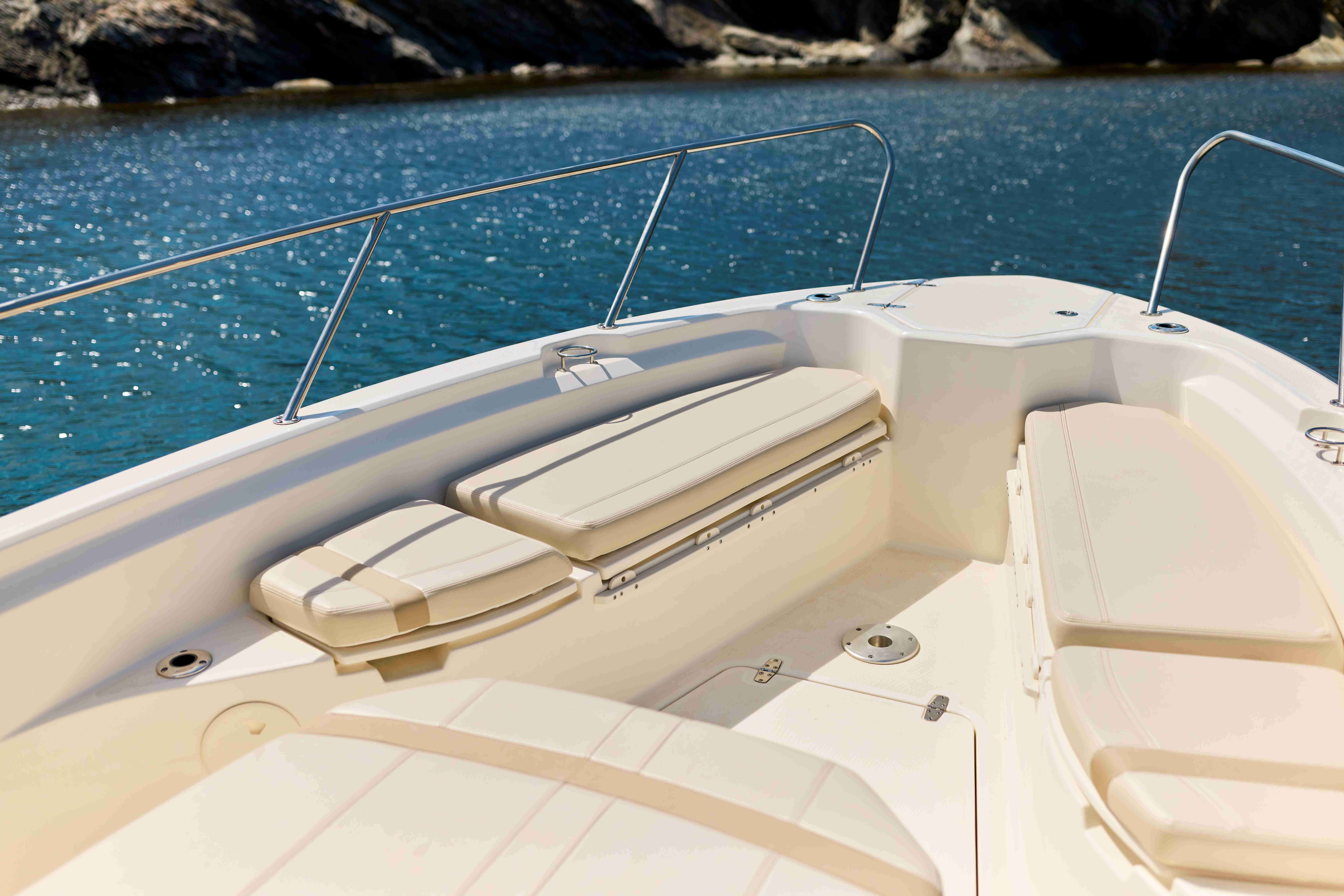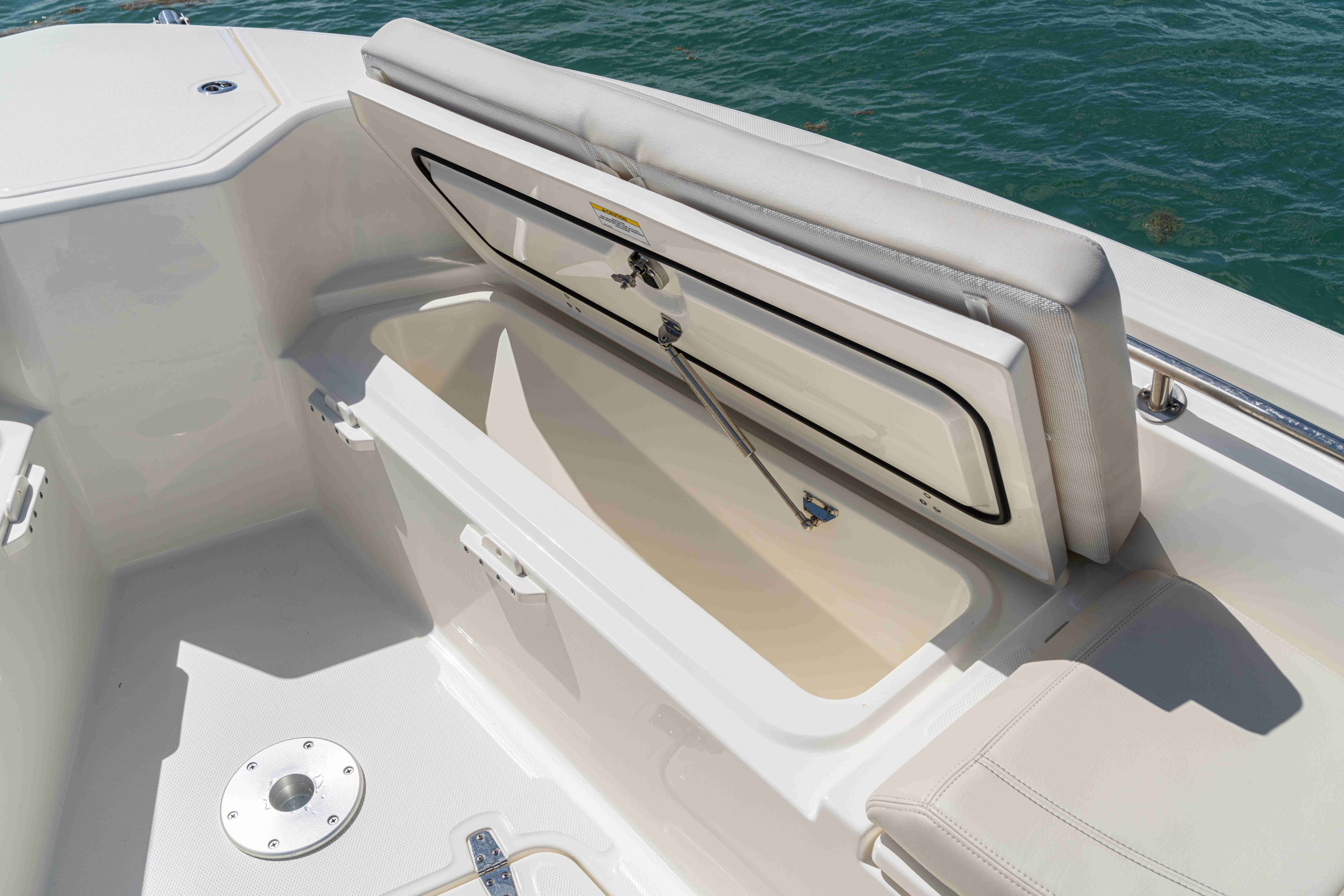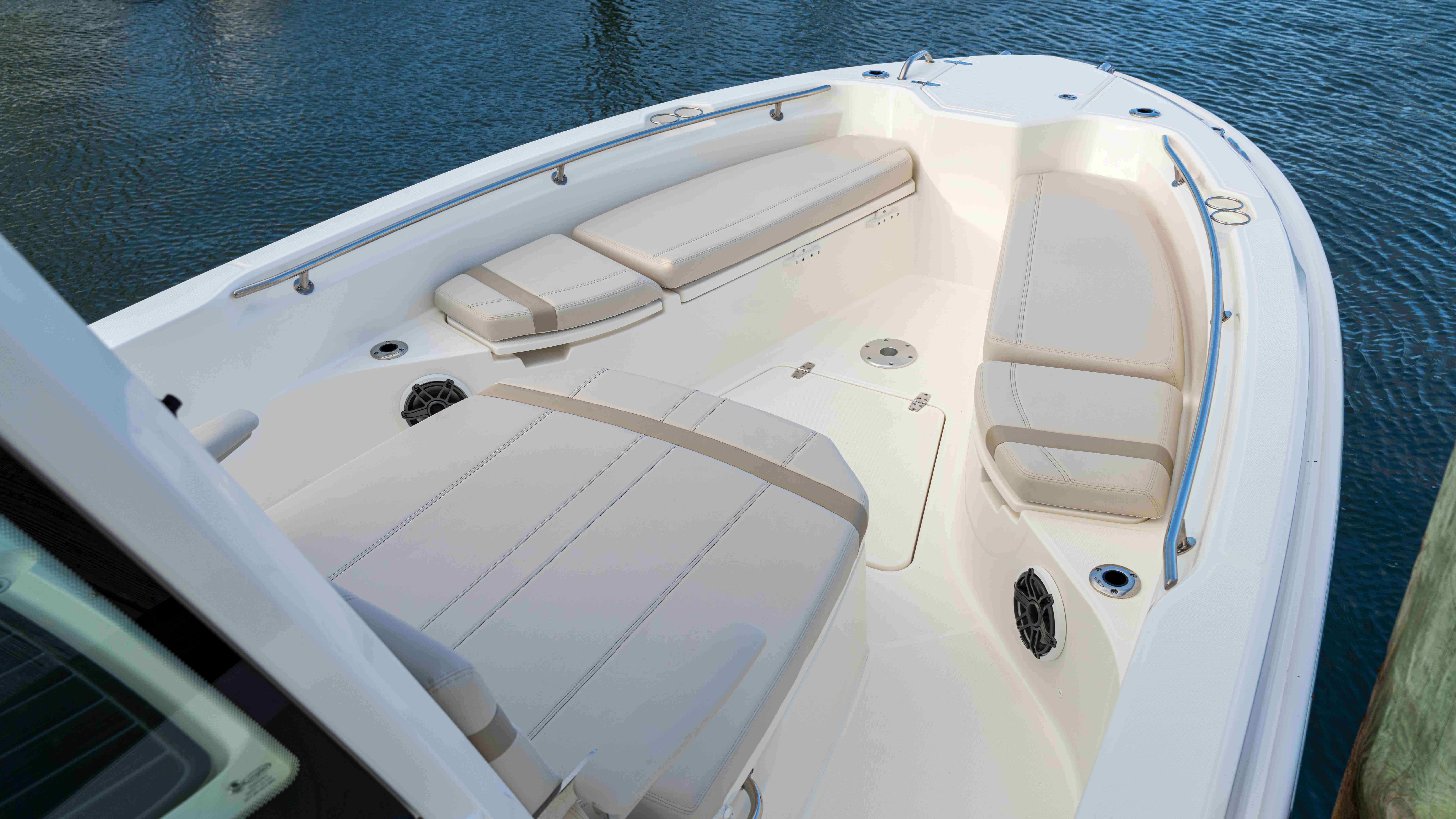 - Ample rod storage, a standard transom livewell, and pump-out forward fishbox provide outstanding fishability.