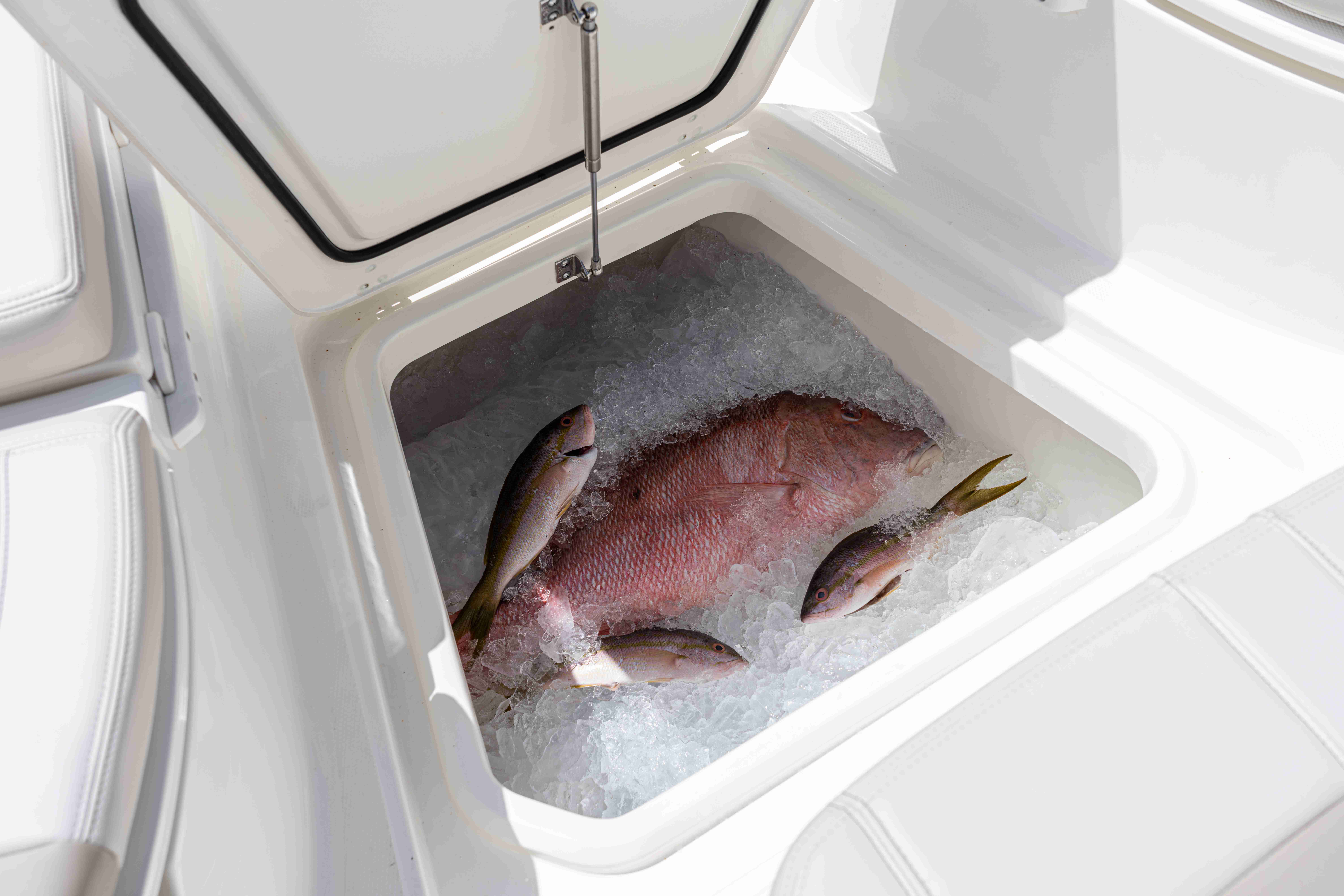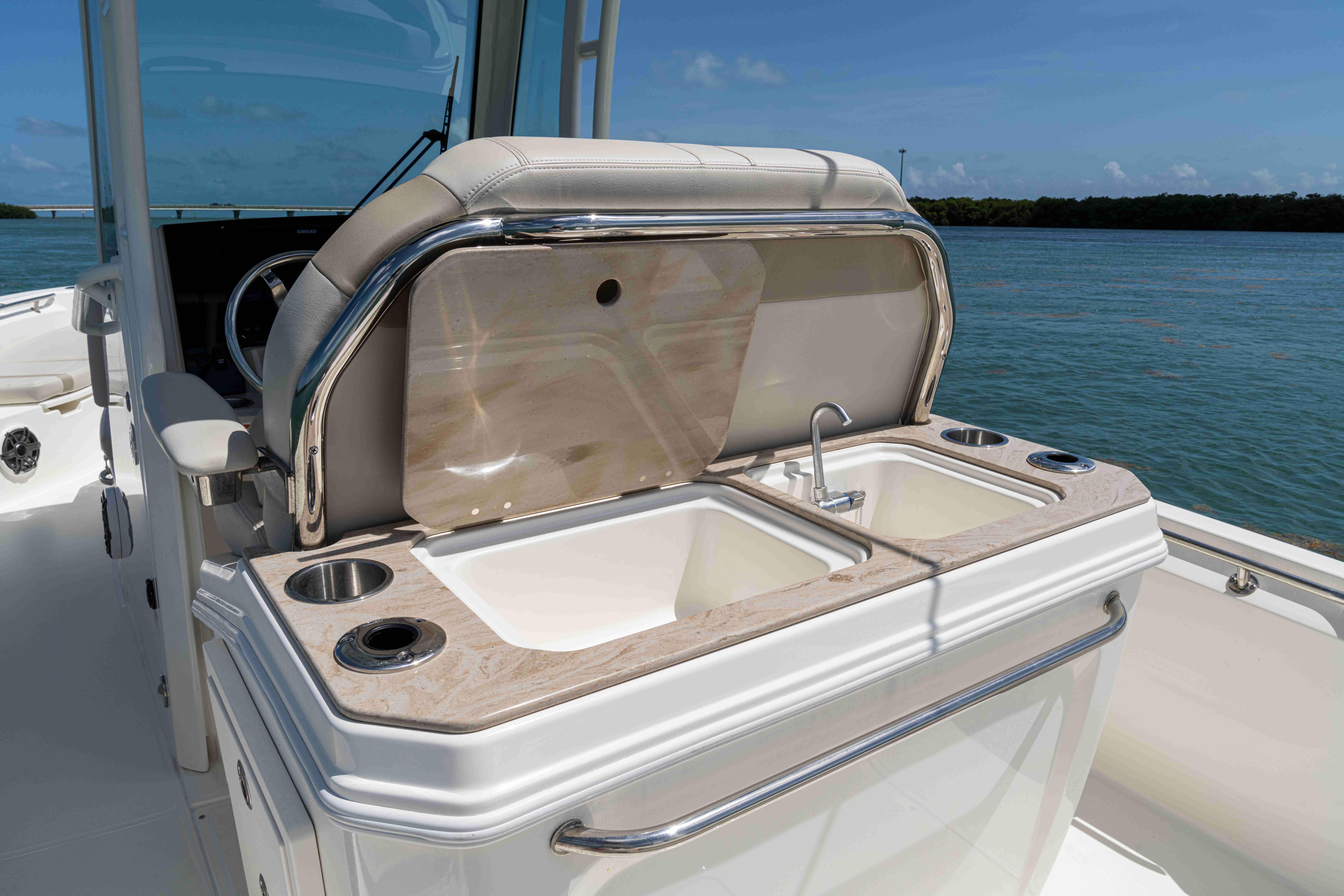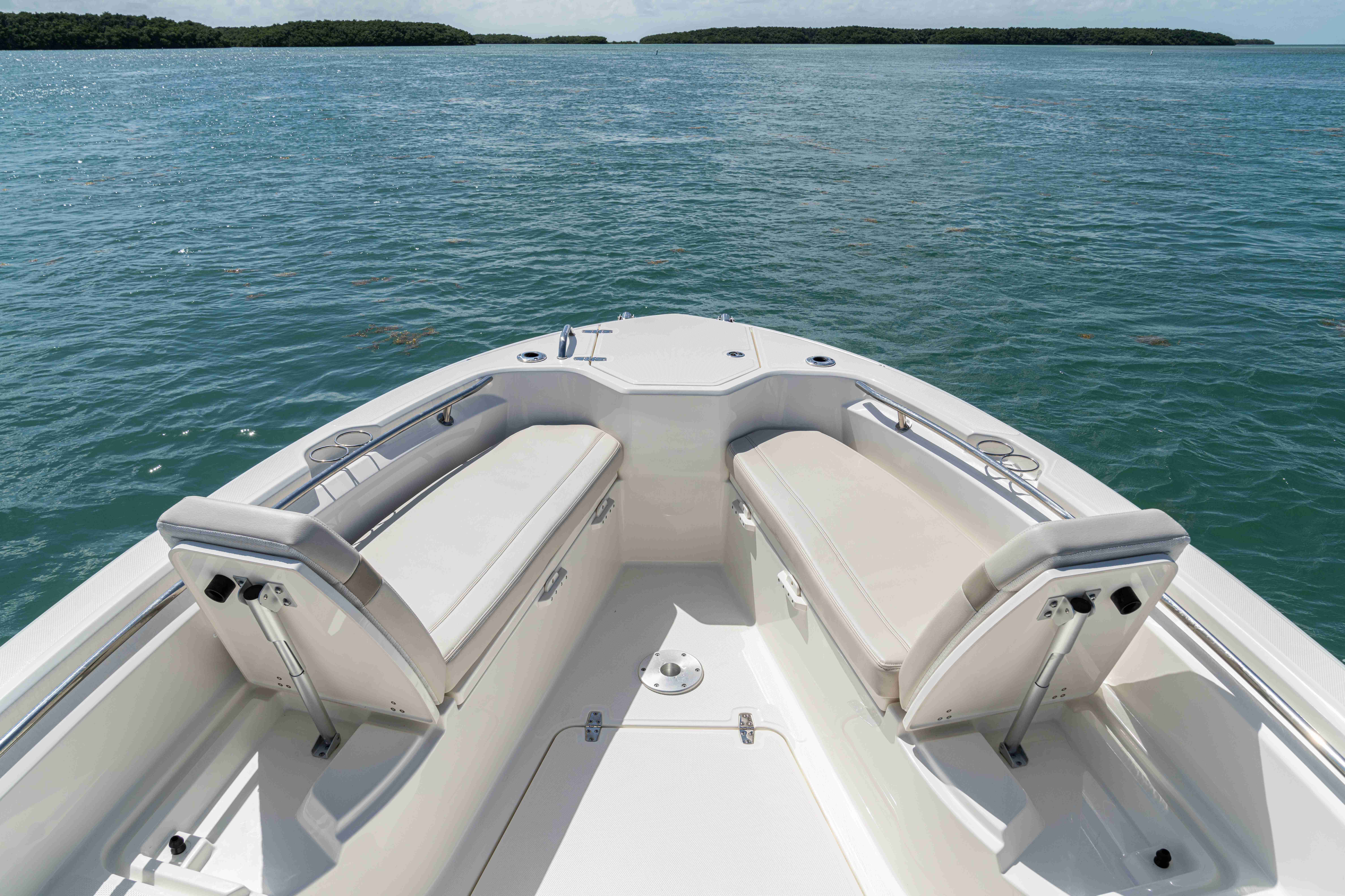- Ample rod storage, a standard transom livewell, and pump-out forward fishbox provide outstanding fishability.