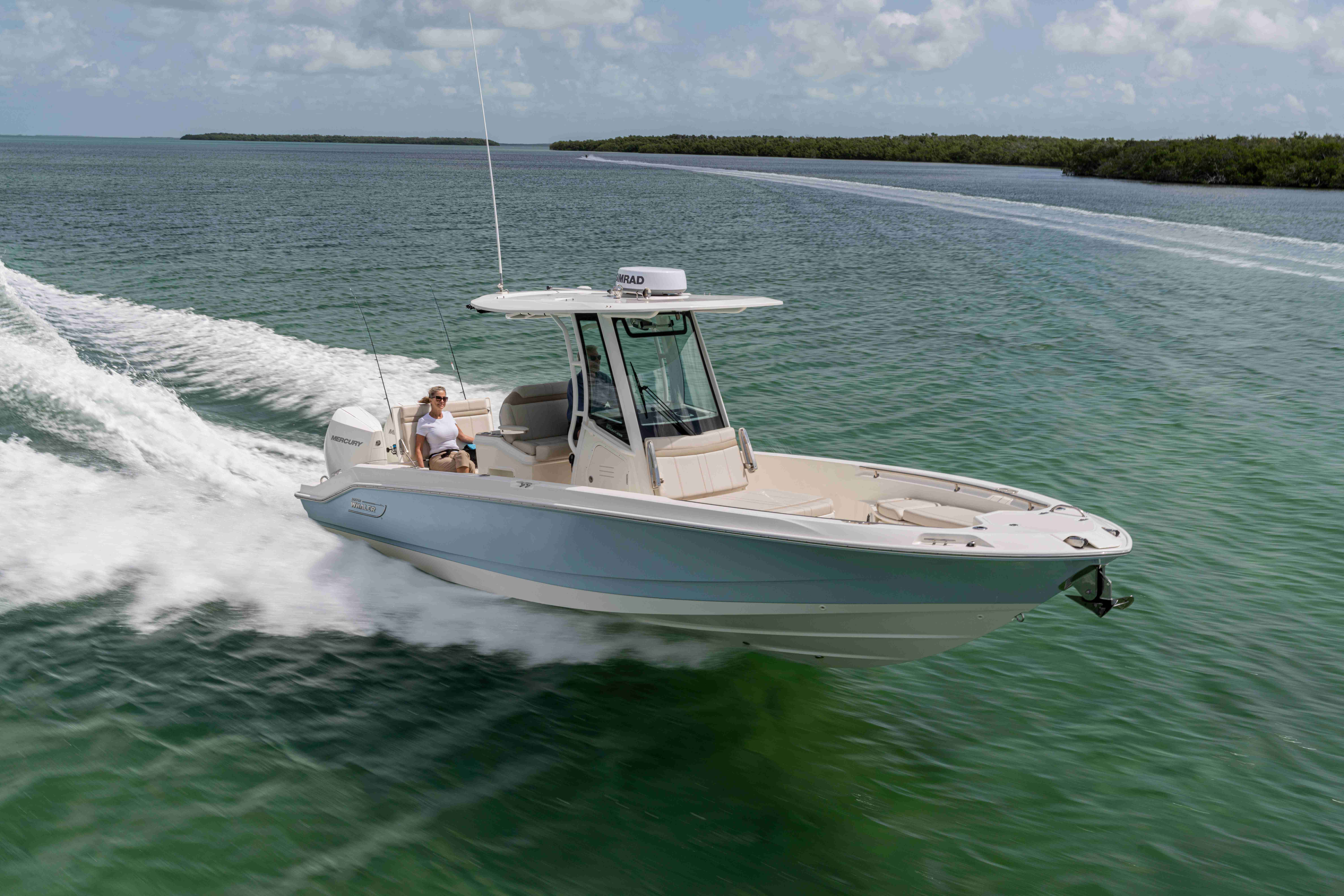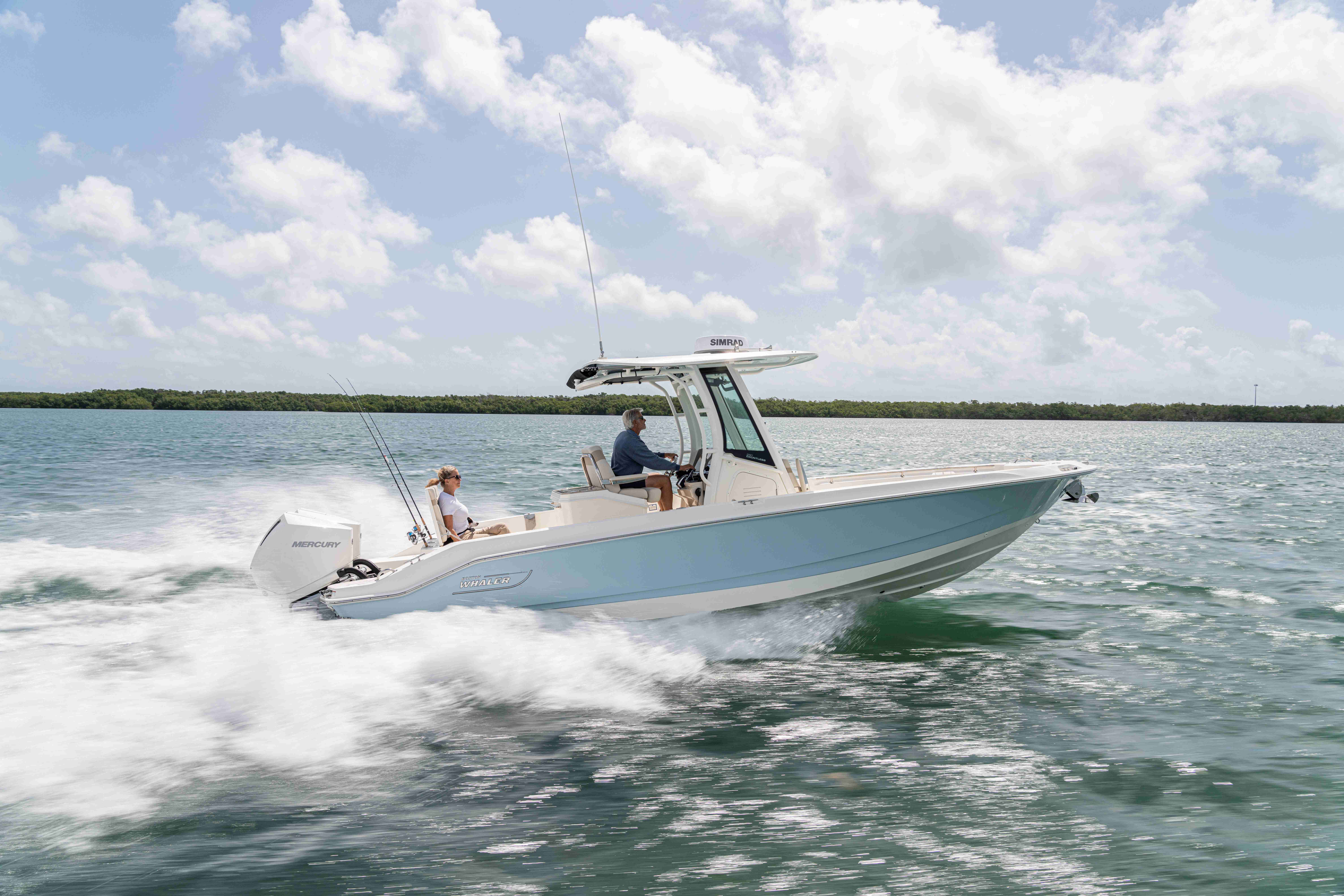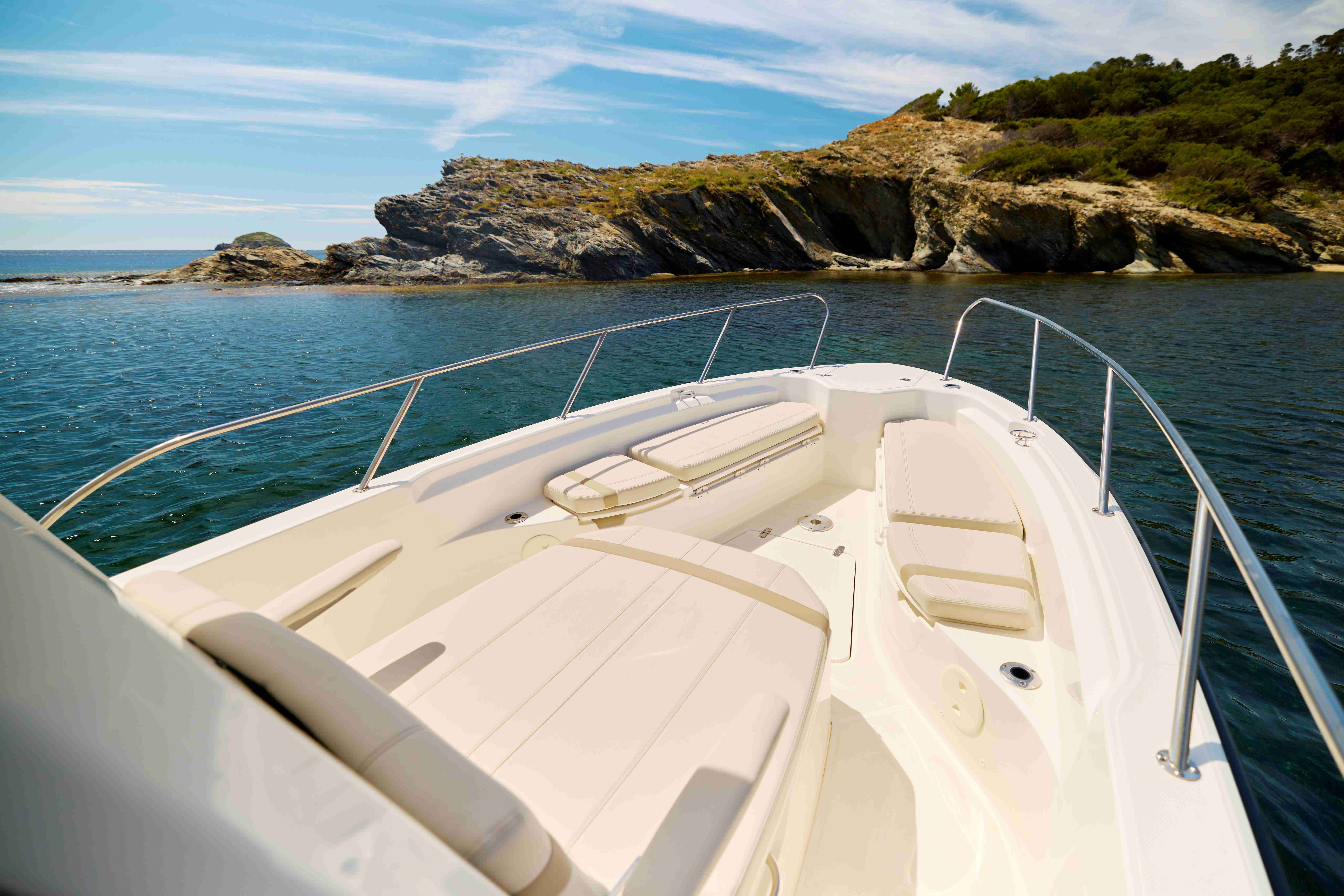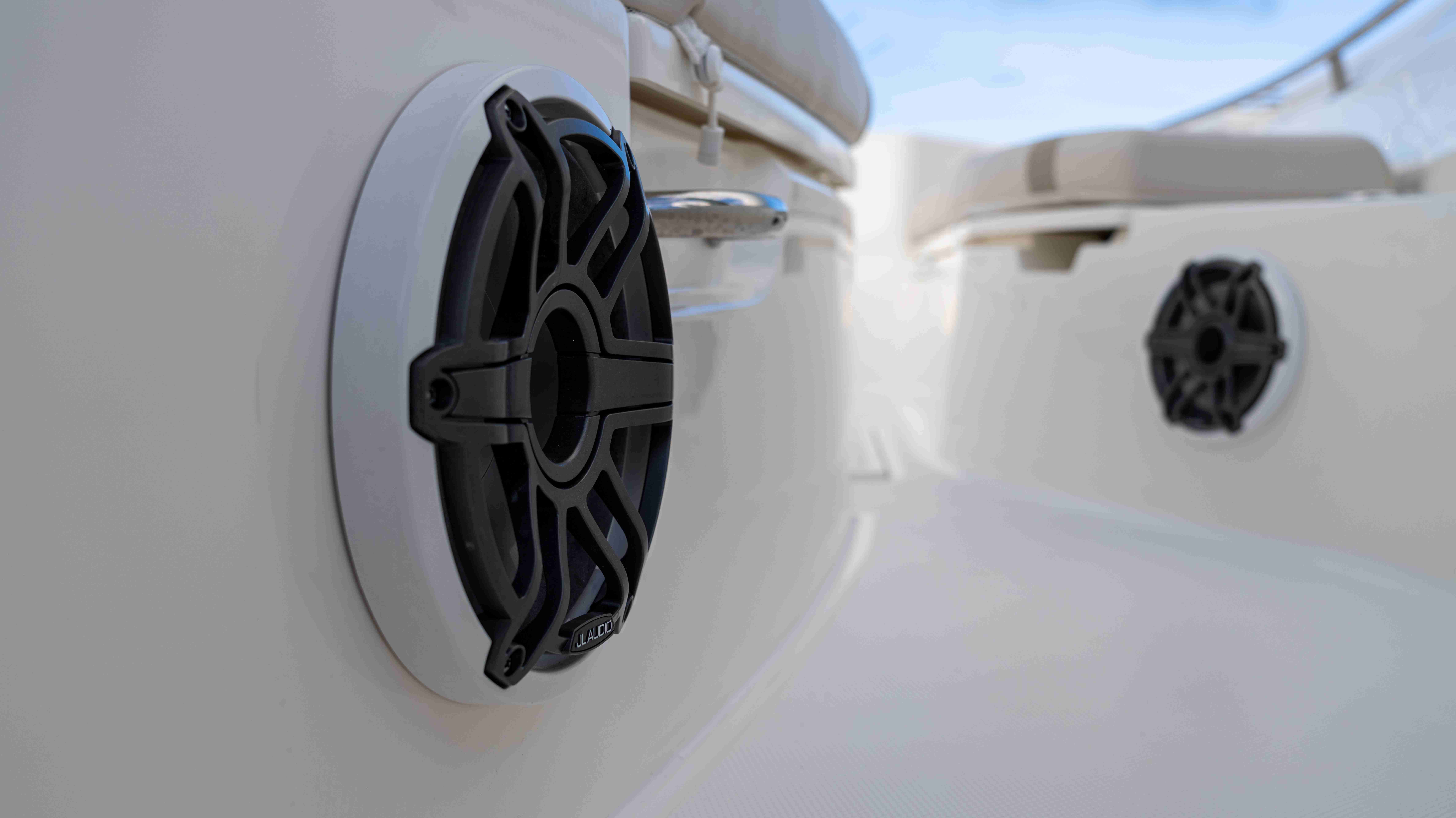 - Ample rod storage, a standard transom livewell, and pump-out forward fishbox provide outstanding fishability.