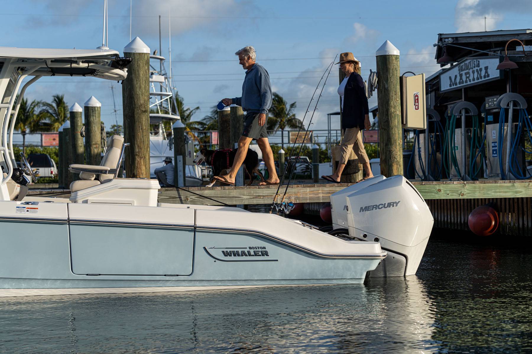 The flagship of our bay boat family, the 280 Dauntless is a multifunctional center console that is versatile enough to venture offshore for big game. True to its name, this 28-foot bay boat is fearless and ready for any adventure, with a wide range of options and packages available to tailor it to your specific angling needs— whether that’s inshore casting for reds or far past the breakers jigging for snapper. Superb styling, ideal layout and Whaler’s legendary unsinkable hull make the 280 Dauntless a true saltwater champion.