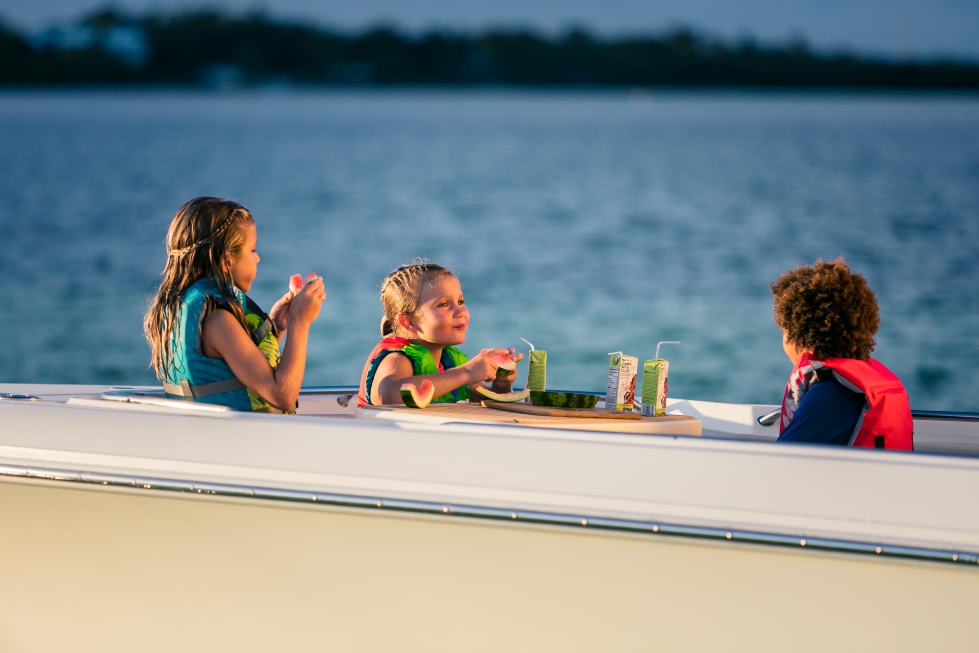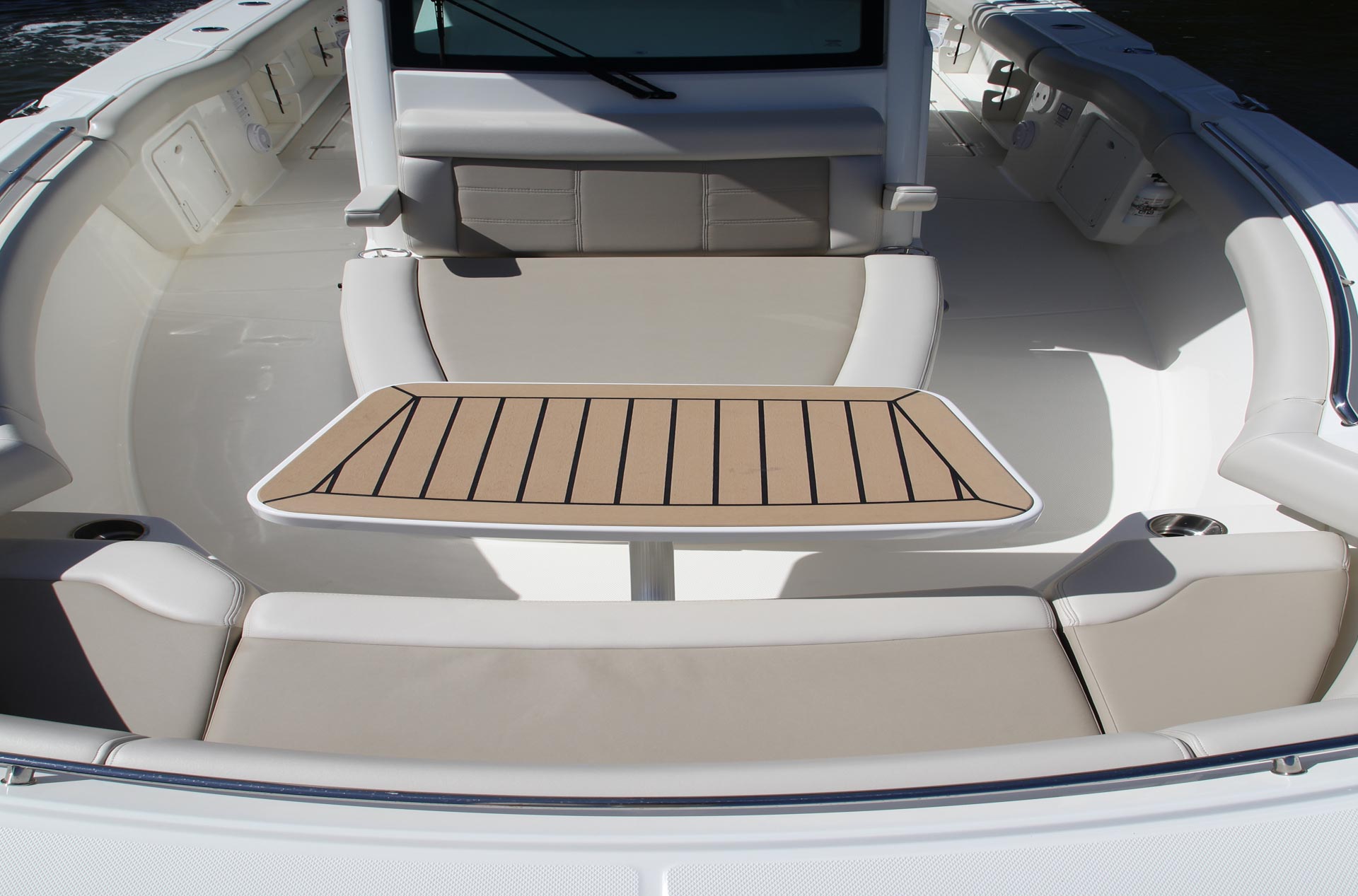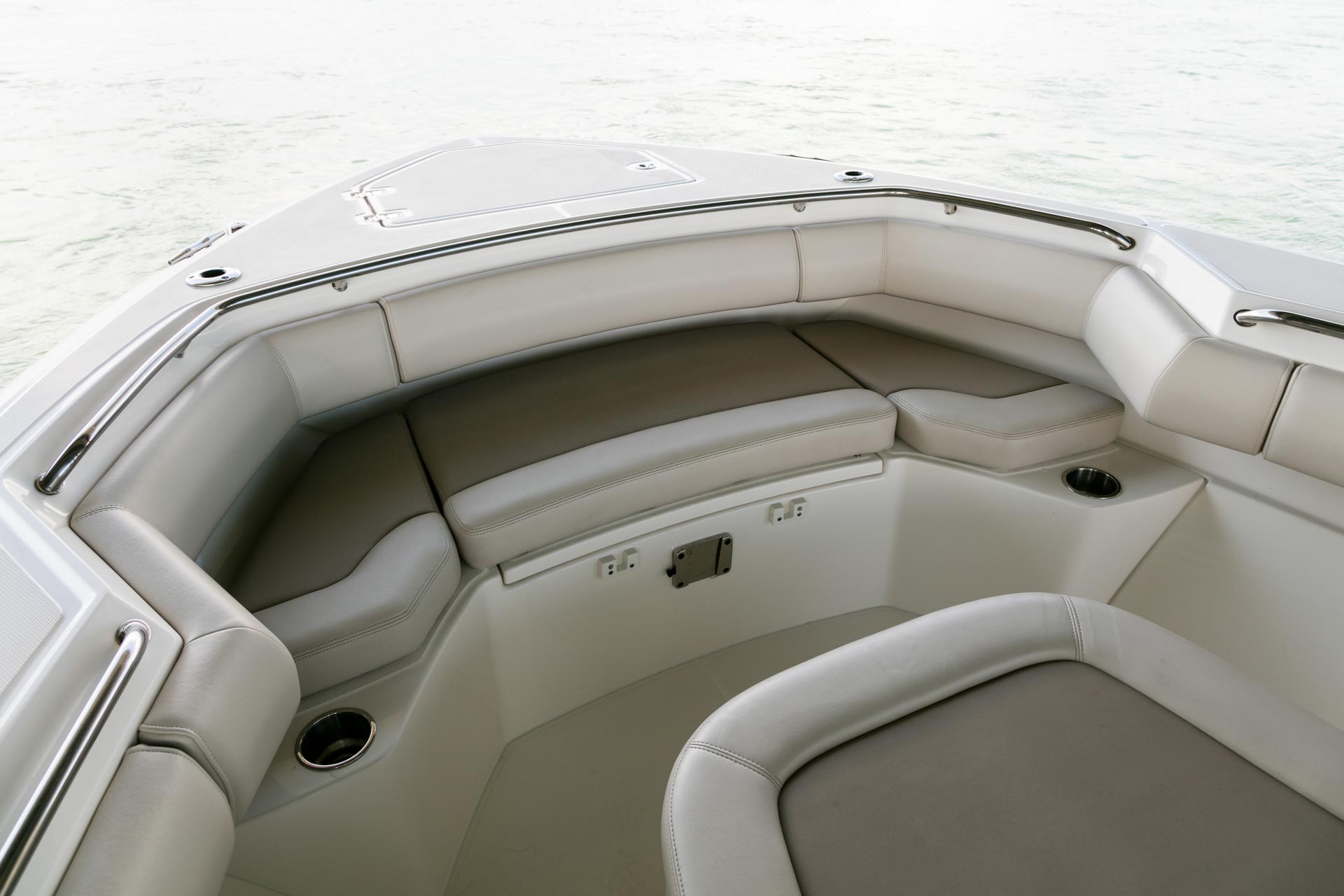- Large open bow includes a generous lounge with armrests and social-forward seating.