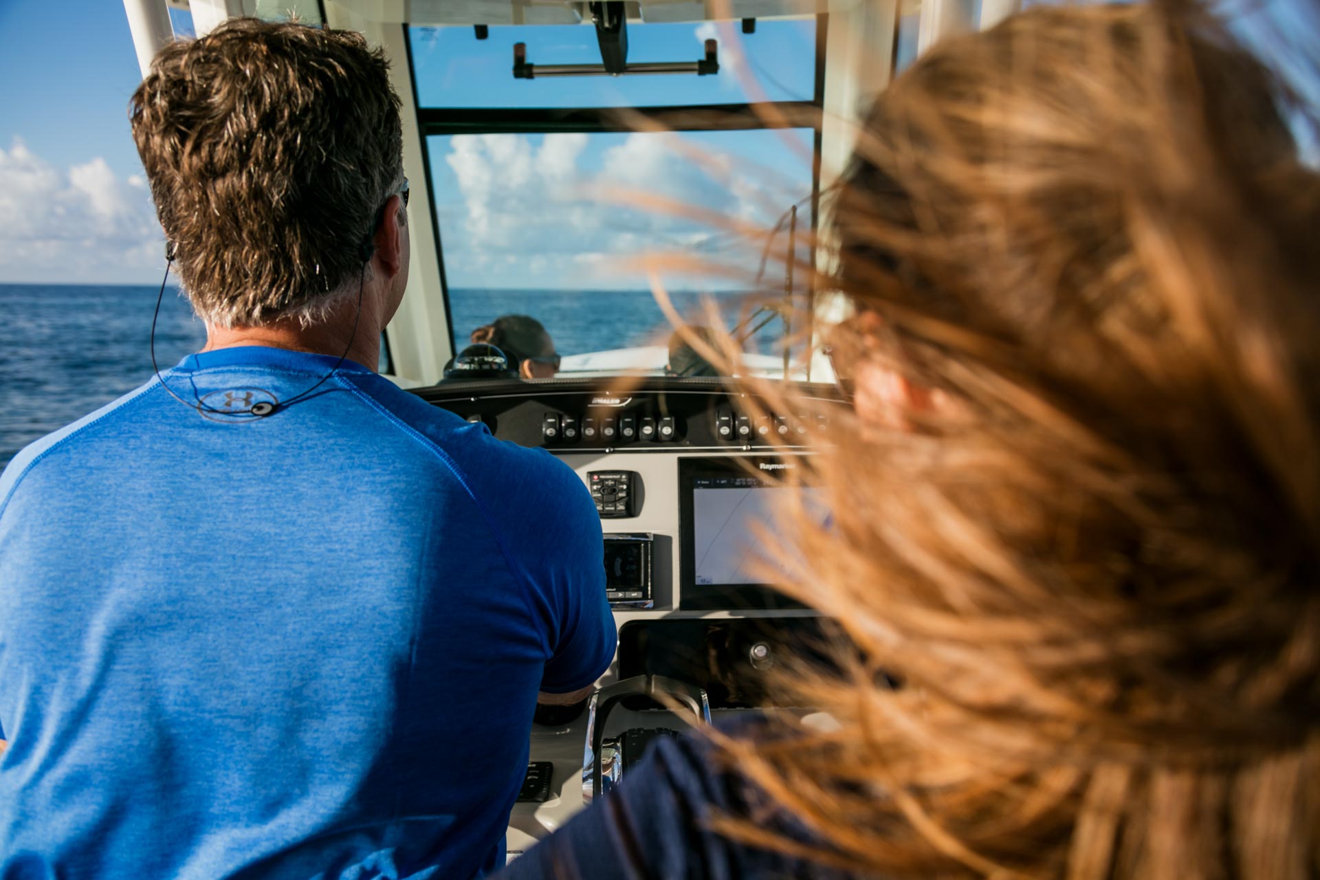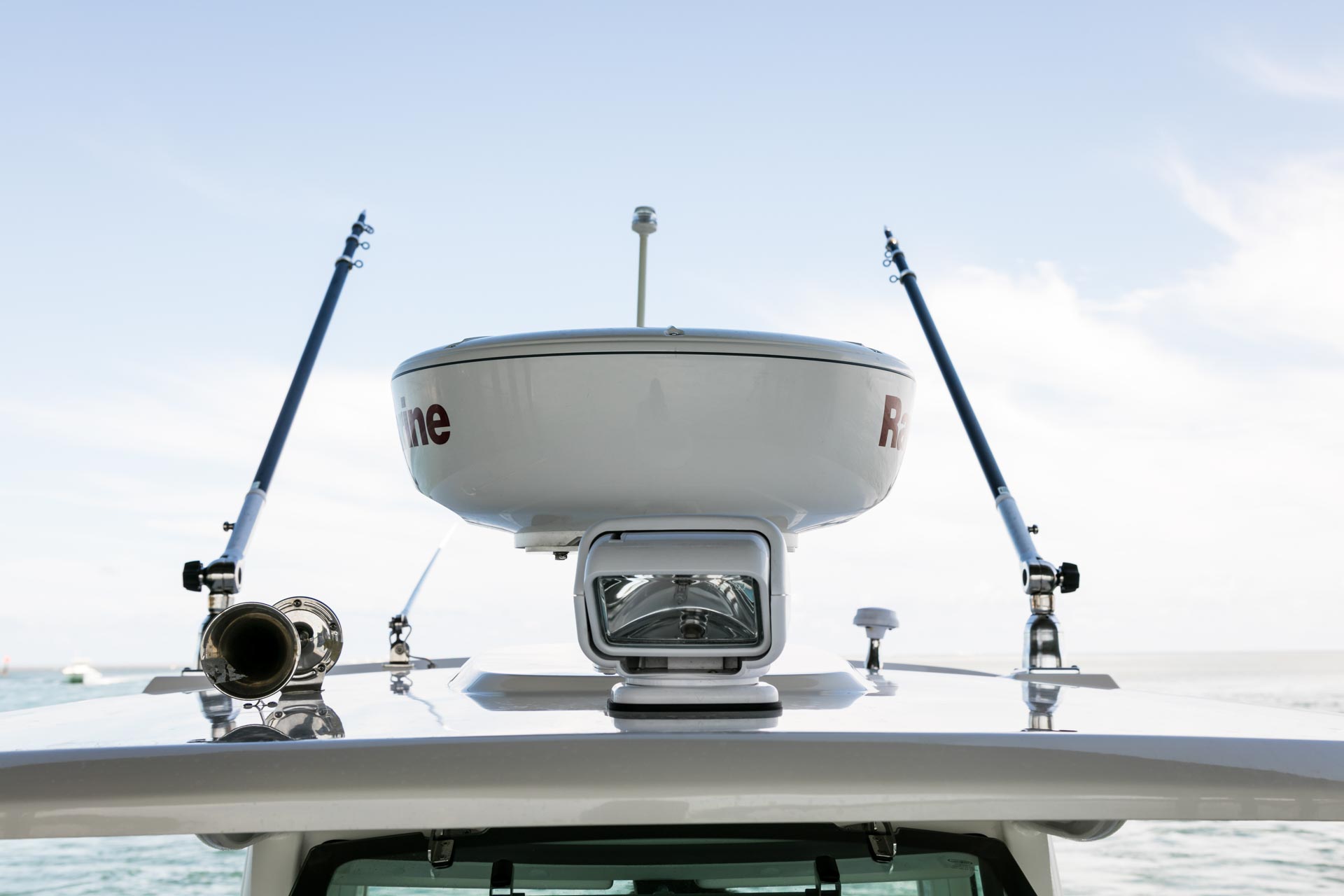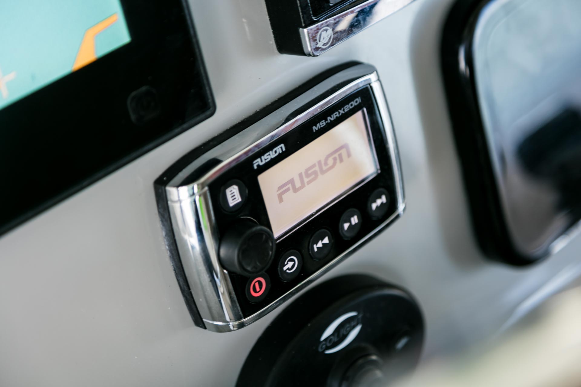 - Tempered-glass windshield and optional heavy-duty integrated hardtop system with floodlights and life-jacket storage available.