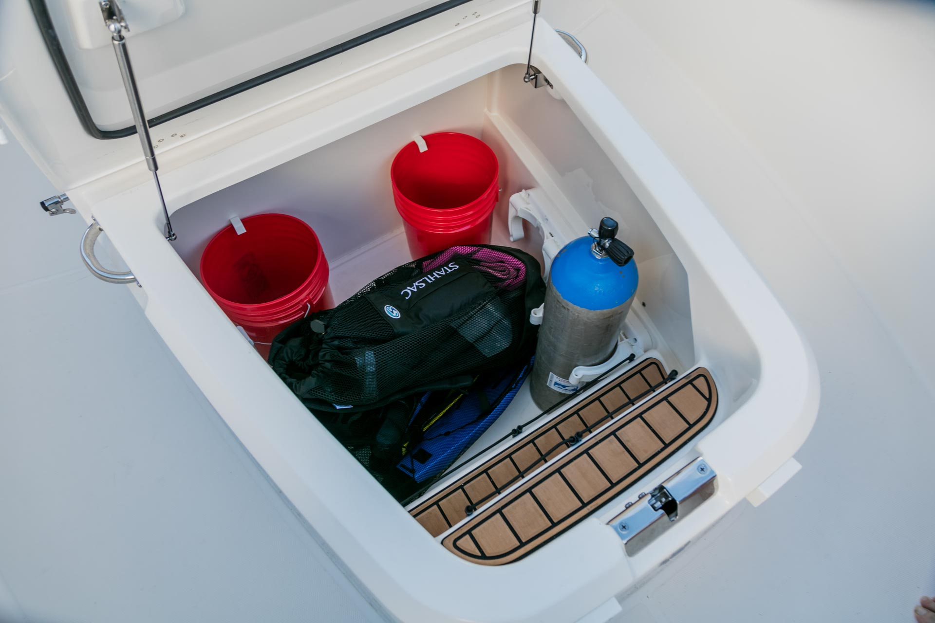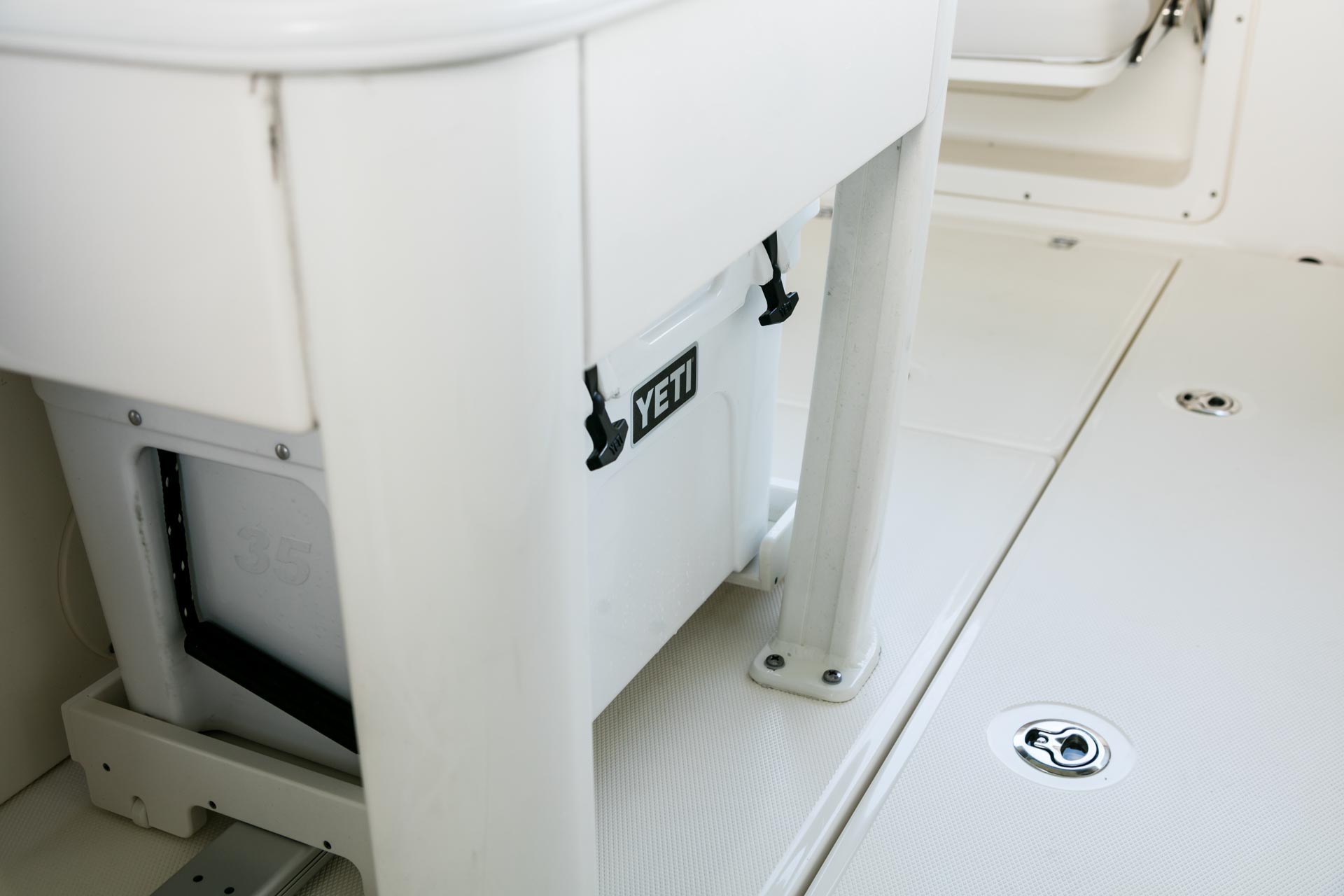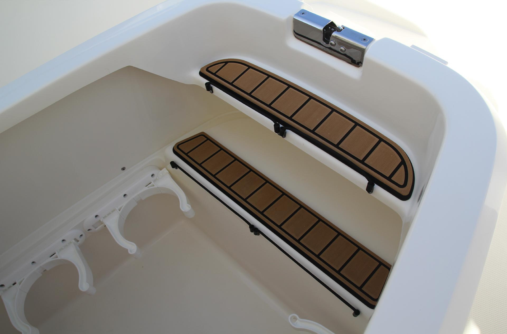 - A comfortable aft bench folds cleanly away to maximize fish-fighting room.